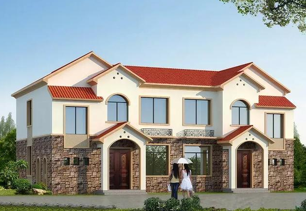 如果家里孩子多怎么辦呢?也可以在原來宅基地上建造雙拼戶型、三拼戶型。如下圖所示這種雙拼戶型,整體面寬18米,上下二層,每一側(cè)各有5室2廳,兩邊又是相互獨立的,父母住哪邊都行,還能同時照看兩家的孩子,多好啊。如下圖這棟現(xiàn)實中建好的雙拼戶型,做父母的在村里多么自豪。