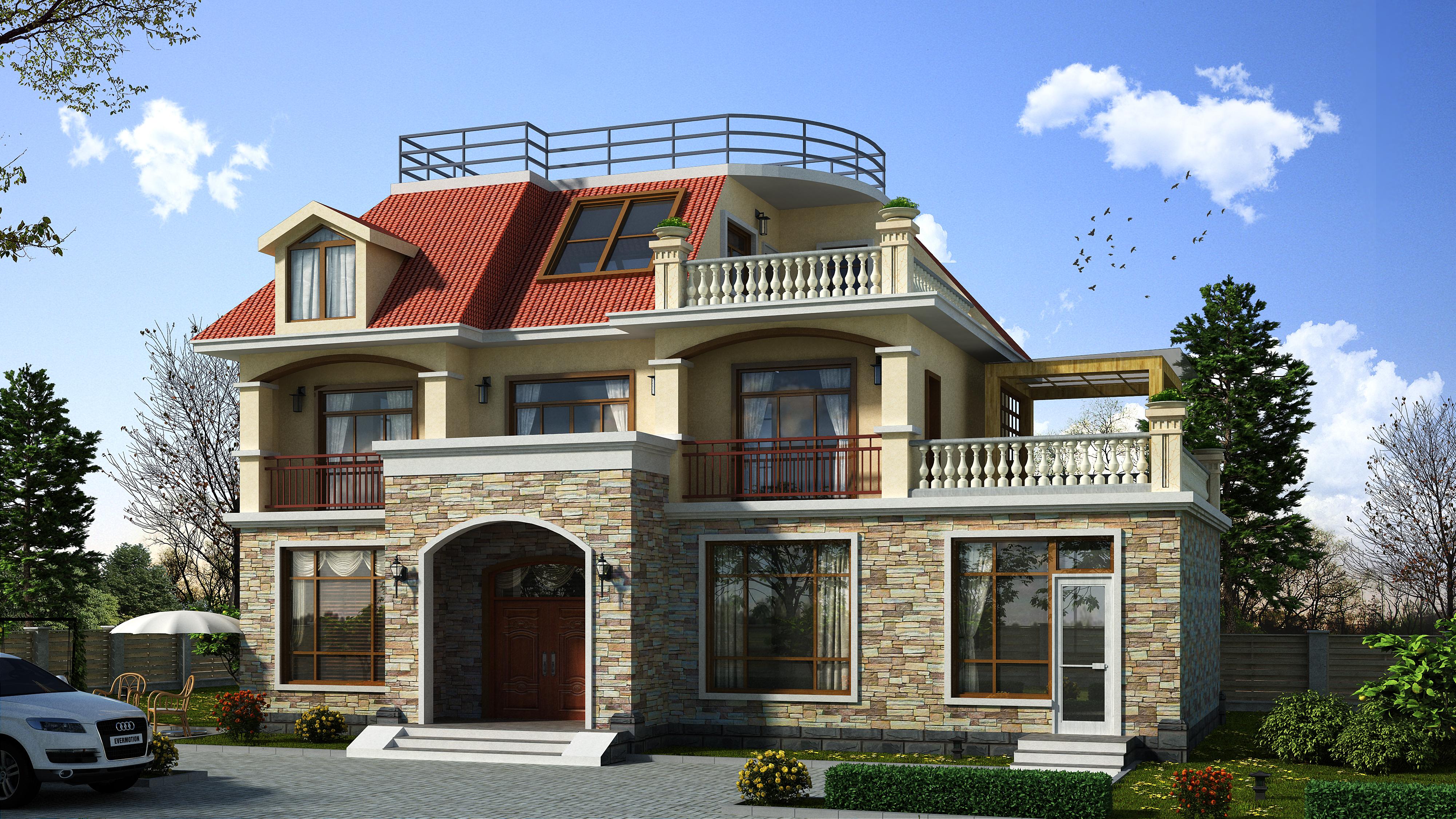 看上去是不是這款效果圖在哪里見過,又感覺哪里不同呢,側(cè)邊延伸出來一間房子,這就是去年比較流行的對(duì)稱戶型的升級(jí)款。頂層的閣樓雖然感覺有點(diǎn)和整體不太搭配,但是可能增加了不少使用空間,也更像是一個(gè)農(nóng)村的家。