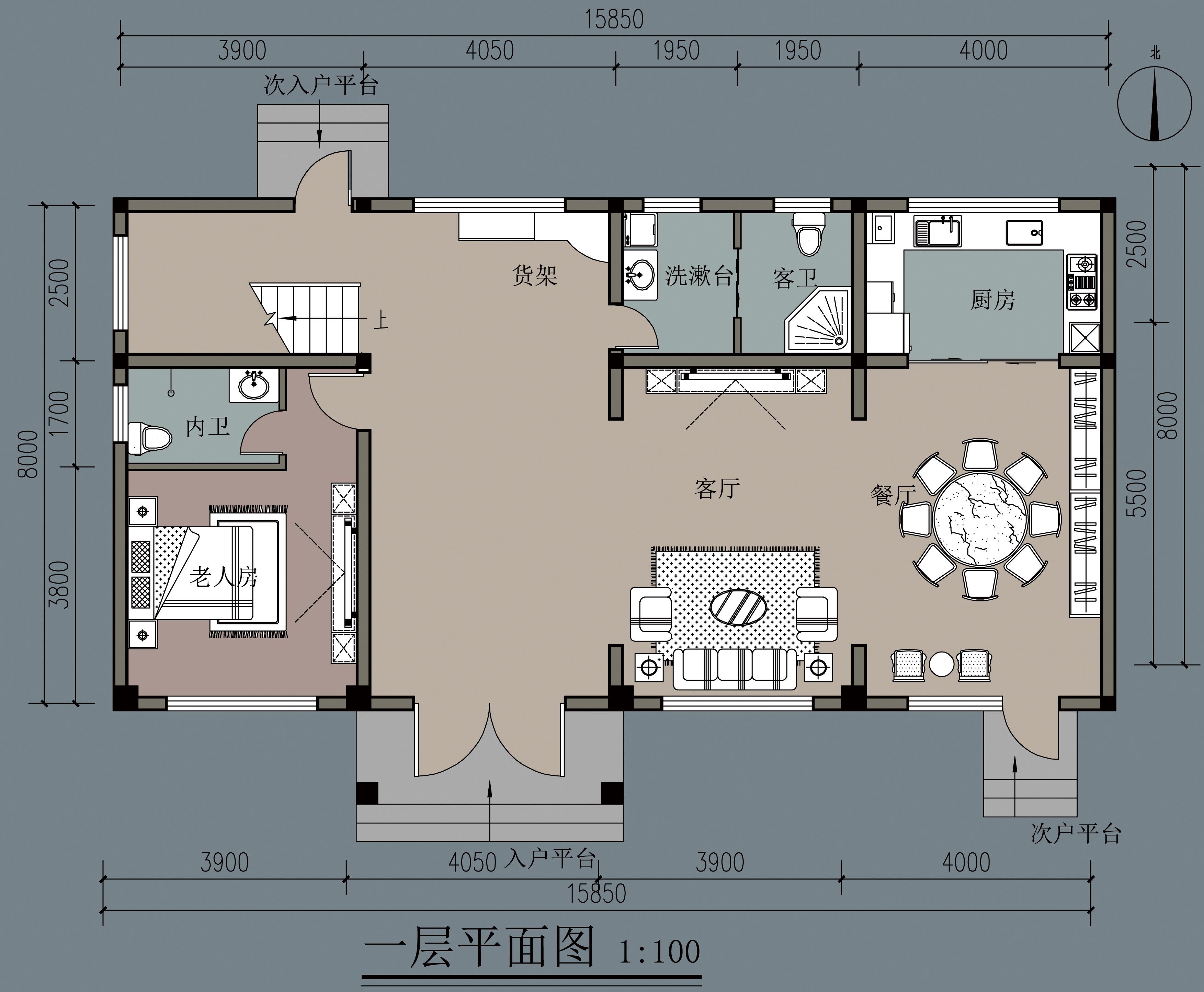 一層從左至右排開的老人房、客廳和餐廳都在向陽(yáng)的一面,客廳的空間相當(dāng)大,這么寬敞的區(qū)域,孩子在里面玩耍,都可以來回亂跑,也不用擔(dān)心磕磕碰碰了。餐廳和廚房原本就是要獨(dú)立于主體的,現(xiàn)在內(nèi)部打通了更方便,而且廚房做飯不會(huì)影響到客廳和老人房。