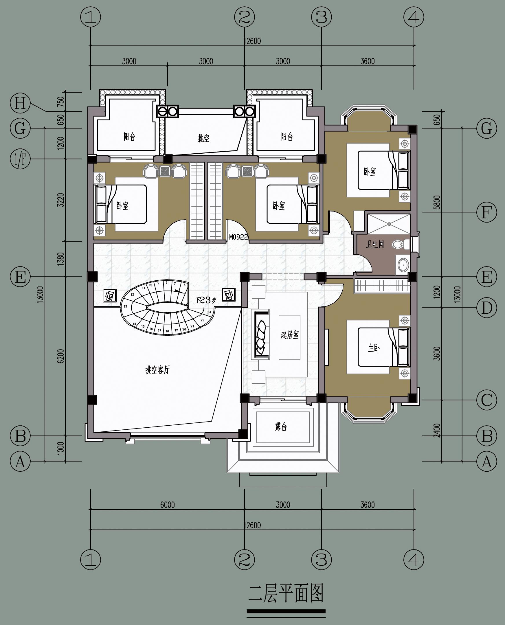 二層平面圖可以看到,二樓有4間臥室,和很大的露臺,以及連著臥室的陽臺。和一層的加起來,一共就有了5間臥室,對于一般家庭來說,足夠用了。