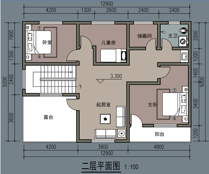 這棟鄉(xiāng)村二層別墅從效果圖就可以看出面寬是較長的,但其實也就12.9m的長度,進深是9.2米,算是一個大多數家庭都建造的尺寸吧。外觀效果設計的比較樸實,紅頂白墻,造型簡單,成本低,農村施工隊伍好施工,沒什么難度。