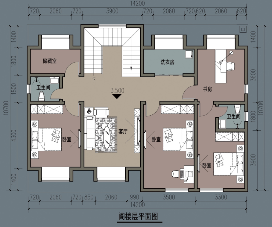 二層主要就是閣樓,所以不應該被稱作是二層。閣樓層有1個帶獨立衛(wèi)生間的臥室和其它兩個次臥,一個公共衛(wèi)生間,一個書房,還有一個洗衣房,一個儲藏室以及客廳。
