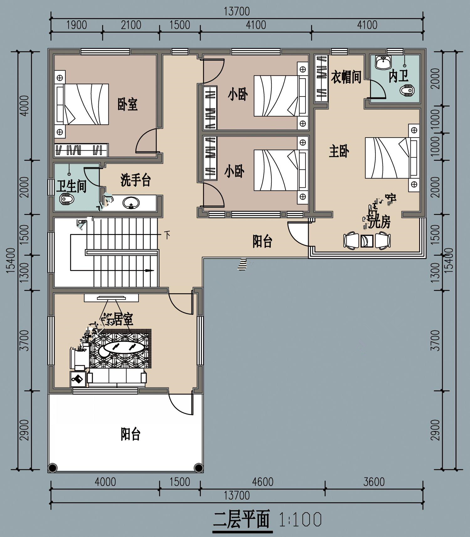 二樓共有四個(gè)臥室,依然有一個(gè)大主臥,另帶三個(gè)小次臥,布局有點(diǎn)像賓館,其實(shí)也是人們喜歡的。起居室連著陽(yáng)臺(tái),是很不錯(cuò)的設(shè)計(jì),想再改造一間房來(lái)也是可以的。