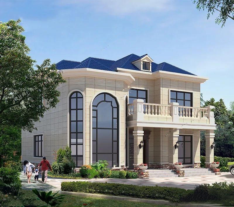 一款復(fù)式二層農(nóng)村別墅設(shè)計(jì),歐式風(fēng)格設(shè)計(jì),藍(lán)色坡屋頂設(shè)計(jì),搭配真石漆外墻,讓整體造型更加的突出亮眼,八角落地窗搭配弧形的屋檐設(shè)計(jì),使別墅充滿歐式氣息。占地方正,布局實(shí)用合理,多窗的設(shè)計(jì),既保證了室內(nèi)的采光又保證了室內(nèi)的通風(fēng)。通過門庭入戶正對(duì)堂屋,符合農(nóng)村生活所需。復(fù)式挑高大客廳搭配旋轉(zhuǎn)樓梯,豪華有面子。雙露臺(tái)設(shè)計(jì),不管是休閑觀景,還是洗衣晾曬,賞花,觀景,都有獨(dú)立的空間。