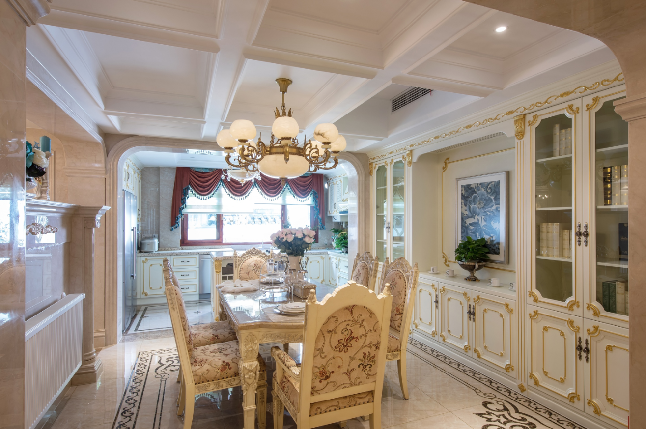 白色、金色、黃色、暗紅色是歐式風(fēng)格中常見的主色調(diào),少量白色糅合,使顏色看起來明亮。