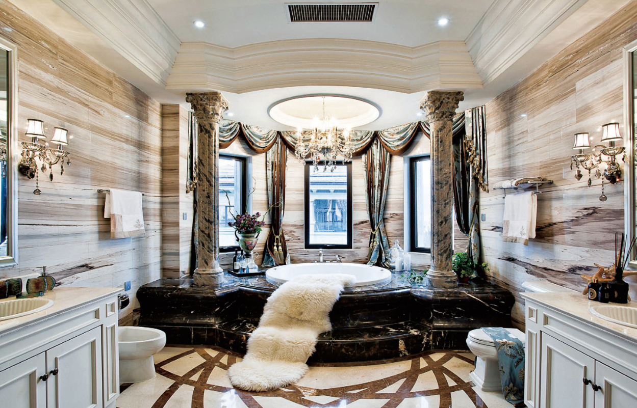 5、新古典主義風(fēng)格還將金屬、石雕等帶進(jìn)了室內(nèi)陳設(shè)和裝飾之中,拉毛粉飾、大理石的運(yùn)用,使室內(nèi)裝飾更講究材質(zhì)的變化和空間的整體性。