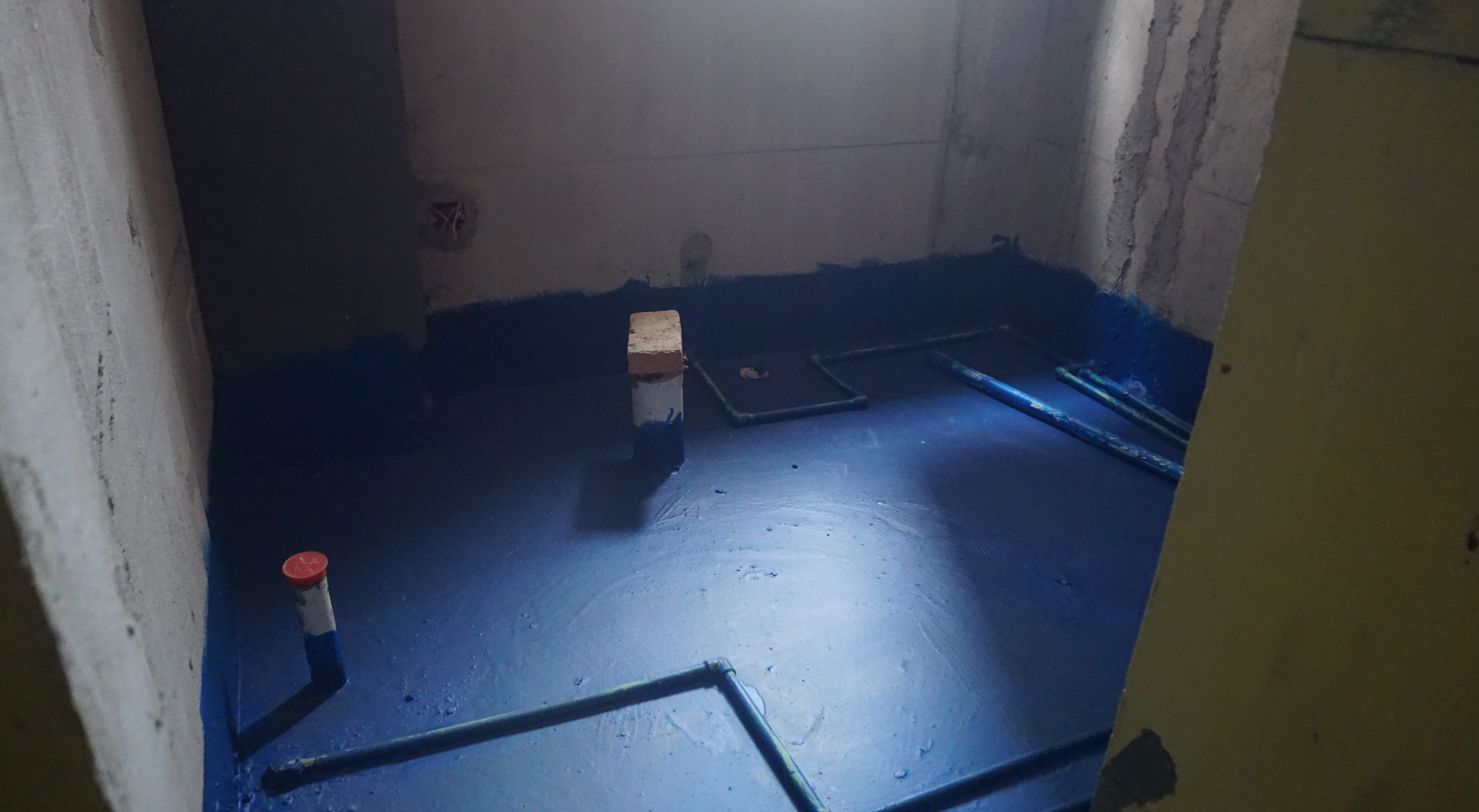 3、防水劑,水泥(重量比1:3)攪拌成素灰漿,密實(shí)的刷在墻上,墻面和地面施工厚度勻?yàn)?毫米左右。