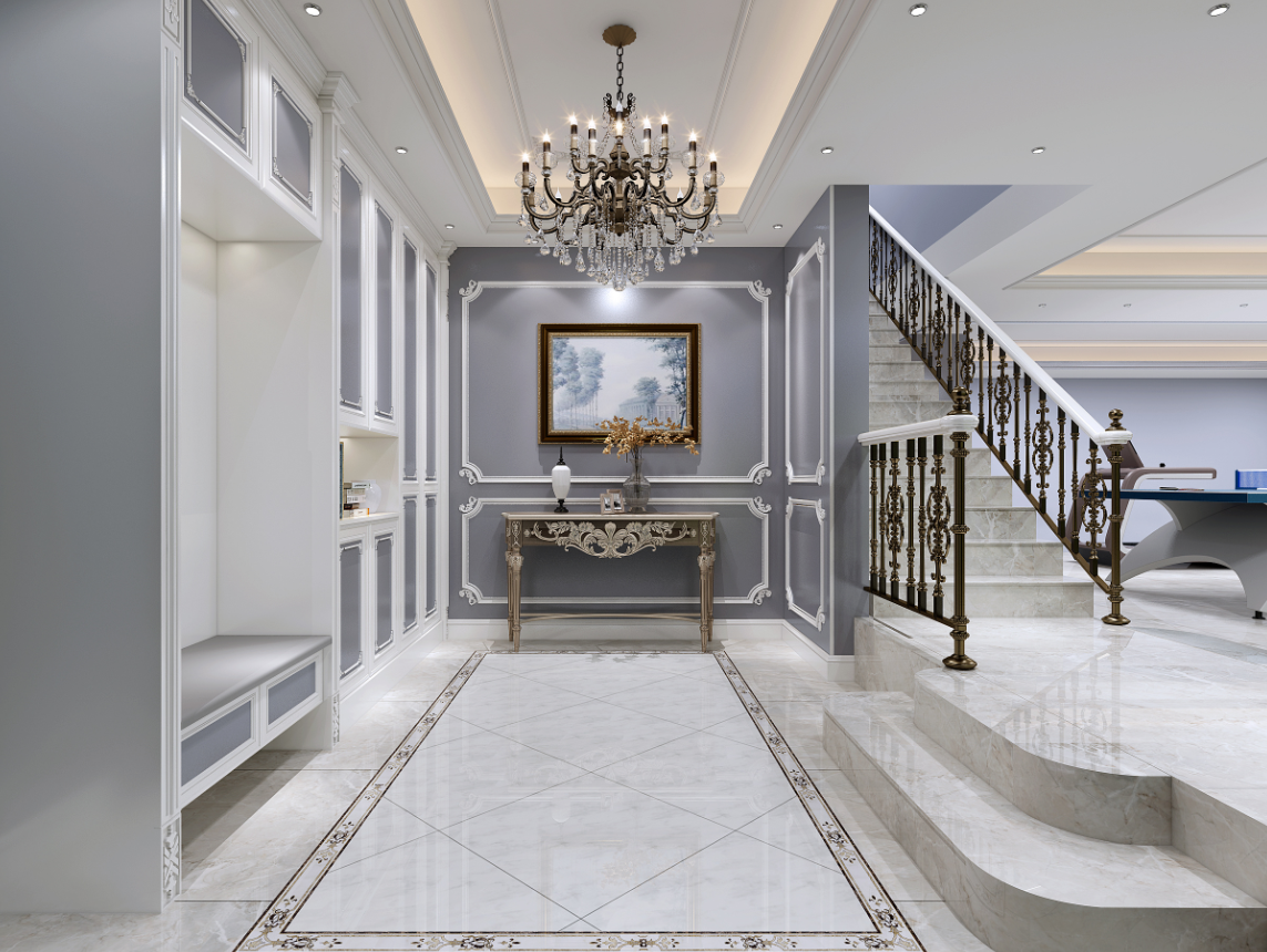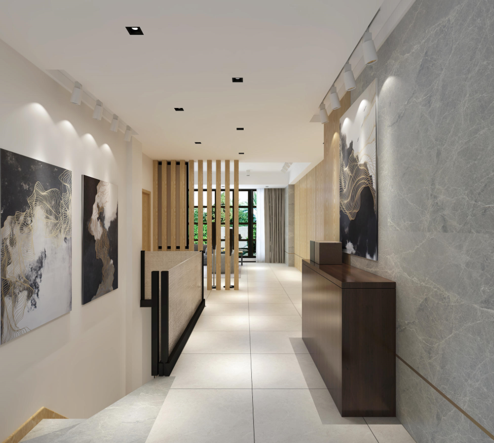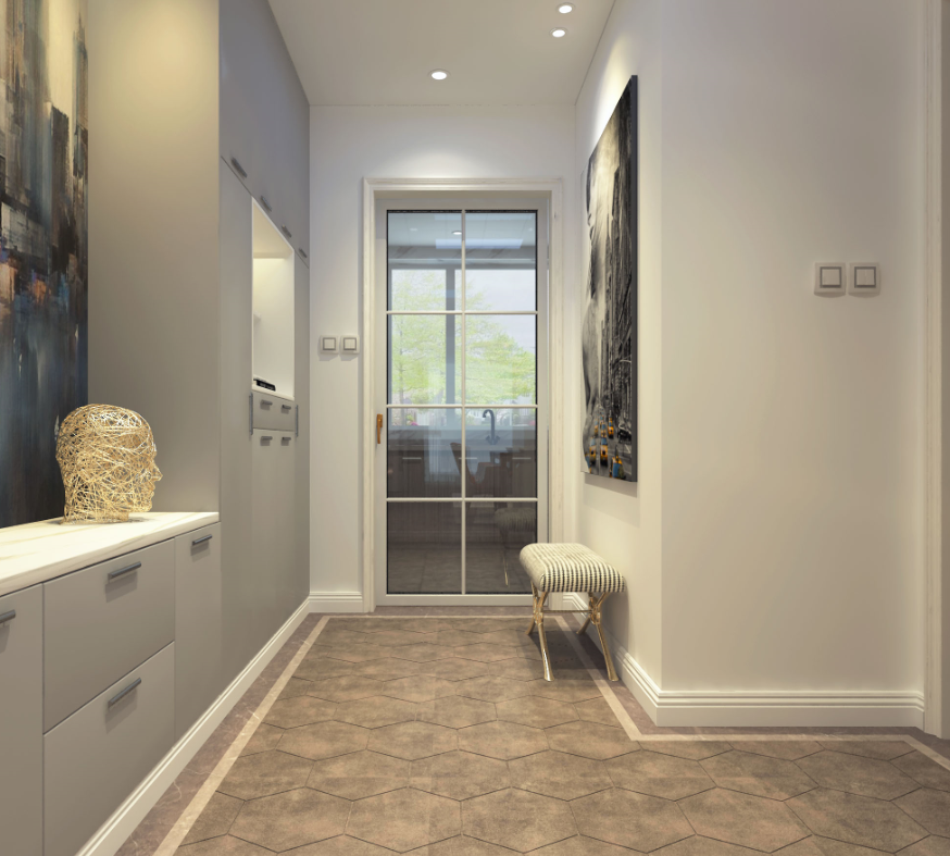3、通常自然光不是很好,因此使用合理的人造光創(chuàng)造明亮的門廳空間至關(guān)重要。一般來說,入口大廳不適合單枝形吊燈(別墅入口大廳除外),通常帶吸頂燈,有些射燈、壁燈、反光燈槽用作輔助光源。應(yīng)該注意的是,入口大廳的光源必須是不同的。