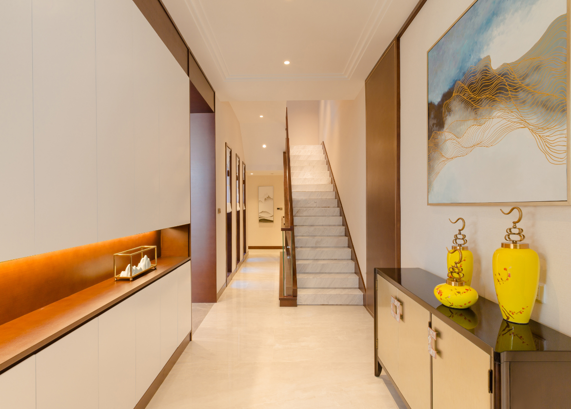 國(guó)廳玄關(guān)的高度在設(shè)計(jì)時(shí)不能太高也不能太低,最好中。因比玄關(guān)高度最好為2米左右比較合適,如果玄關(guān)太低,就會(huì)讓人感覺有壓迫感,太高則沒有什么太大作用。