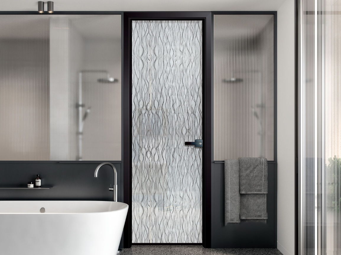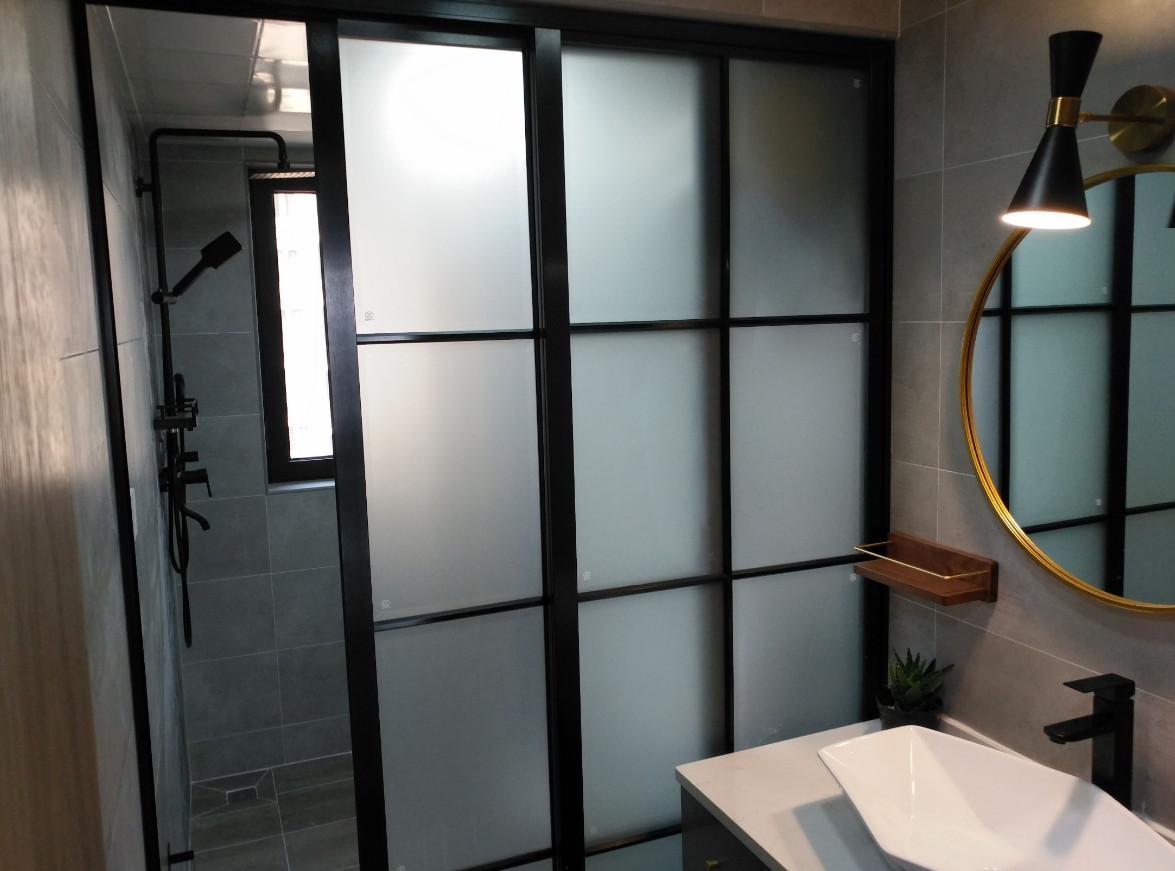 衛(wèi)生間它是一個比較隱私的地方,我們在購買推拉門時最好選擇一些透光不透視的材質,磨砂玻璃門就是一個很好的選擇。就算衛(wèi)生間比較小也不會覺得很壓抑。
