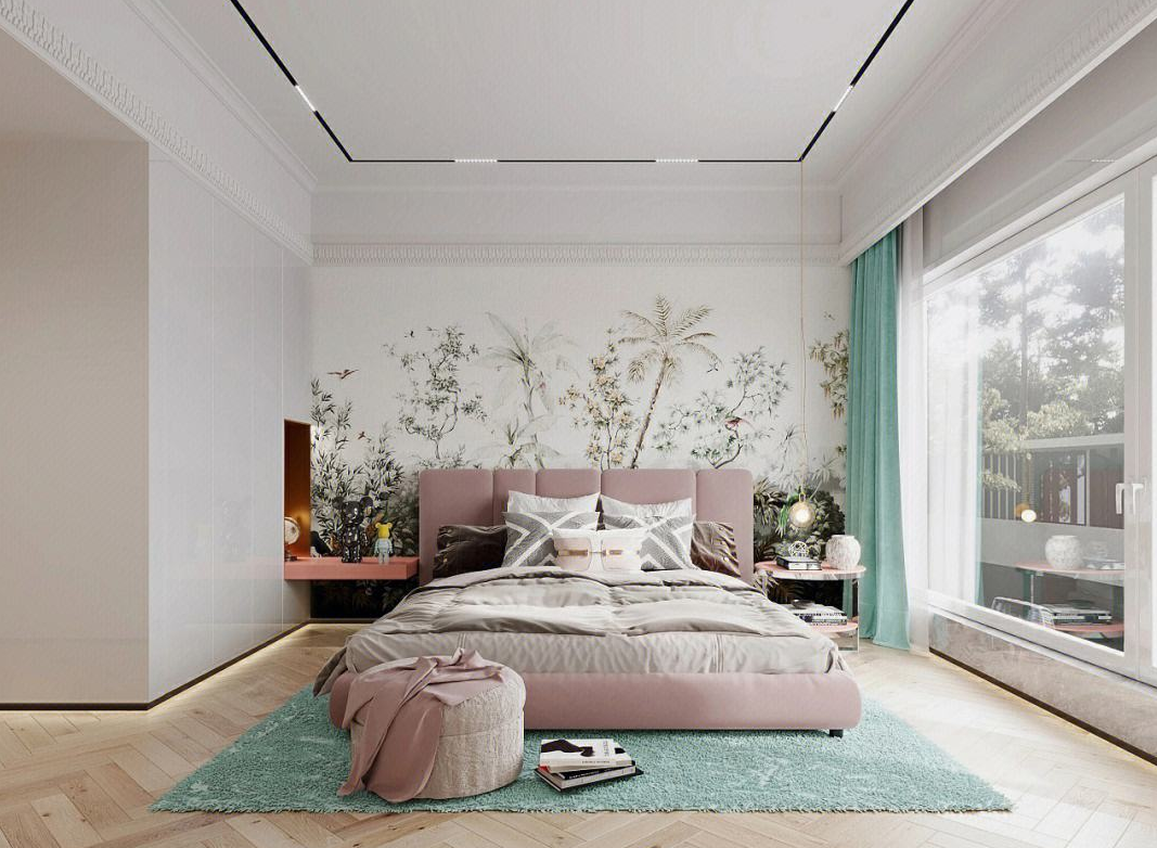 洛可可風(fēng)格的總體特征是輕盈、華麗、精致、細(xì)膩。室內(nèi)裝飾造型高聳纖細(xì),不對稱,頻繁地使用形態(tài)方向多變的如“C”“S”或渦券形曲線、弧線,并常用大鏡面作裝飾,大量運(yùn)用花環(huán)、花束、弓箭及貝殼圖案紋樣。善用金色和象牙白,色彩明快、柔和、清淡卻豪華富麗。室內(nèi)裝修造型優(yōu)雅,制作工藝、結(jié)構(gòu)、線條具有婉轉(zhuǎn)、柔和等特征,以創(chuàng)造輕松、明朗、親切的空間環(huán)境。