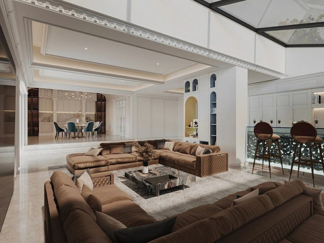 巴洛克風(fēng)格是混搭風(fēng)格的融合,擁有歐式的浪漫感,強(qiáng)調(diào)建筑的力度感,同時又融合律動的節(jié)奏感。運(yùn)用雕塑作裝飾,搭配手繪畫,打破對稱,喜歡運(yùn)用凹凸造型,來營造立體感。裝飾華麗,多采用自然紋理的大理石,金色元素,青銅色來表達(dá)復(fù)古感,同時又不失于時尚感。多用于酒吧、藝術(shù)畫廊等藝術(shù)性強(qiáng)的公共區(qū)域。