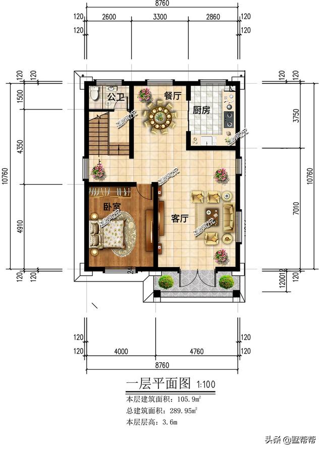 結(jié)構(gòu)形式:框架結(jié)構(gòu),造價30-38萬,開間8.76米,進(jìn)深10.76米,占地面積105.9平方米,建筑面積289.95平方米,建筑高度12.5米
