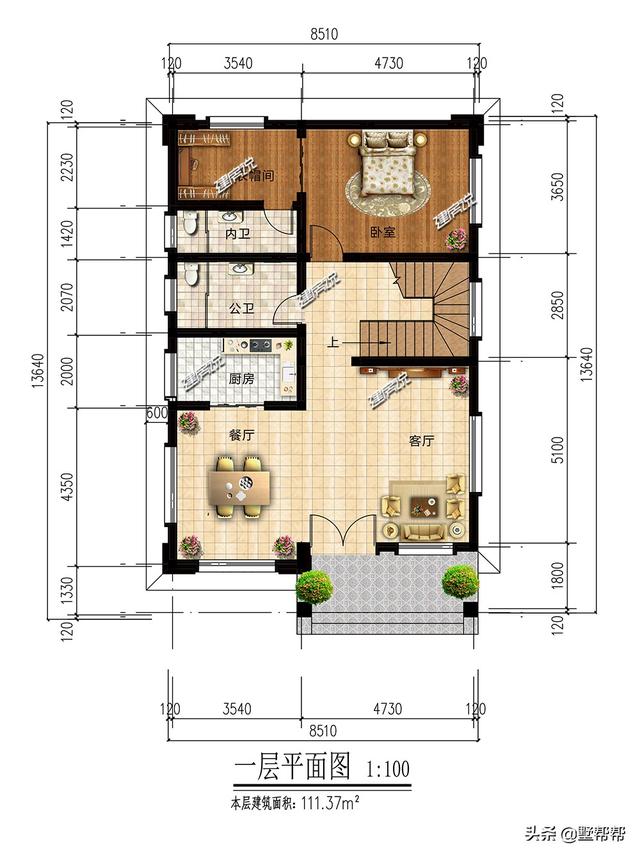 結(jié)構(gòu)形式:磚混結(jié)構(gòu),造價32-40萬,開間8.51米,進(jìn)深13.64米,占地面積111.37平方米,建筑面積292.33平方米,建筑高度13.602米