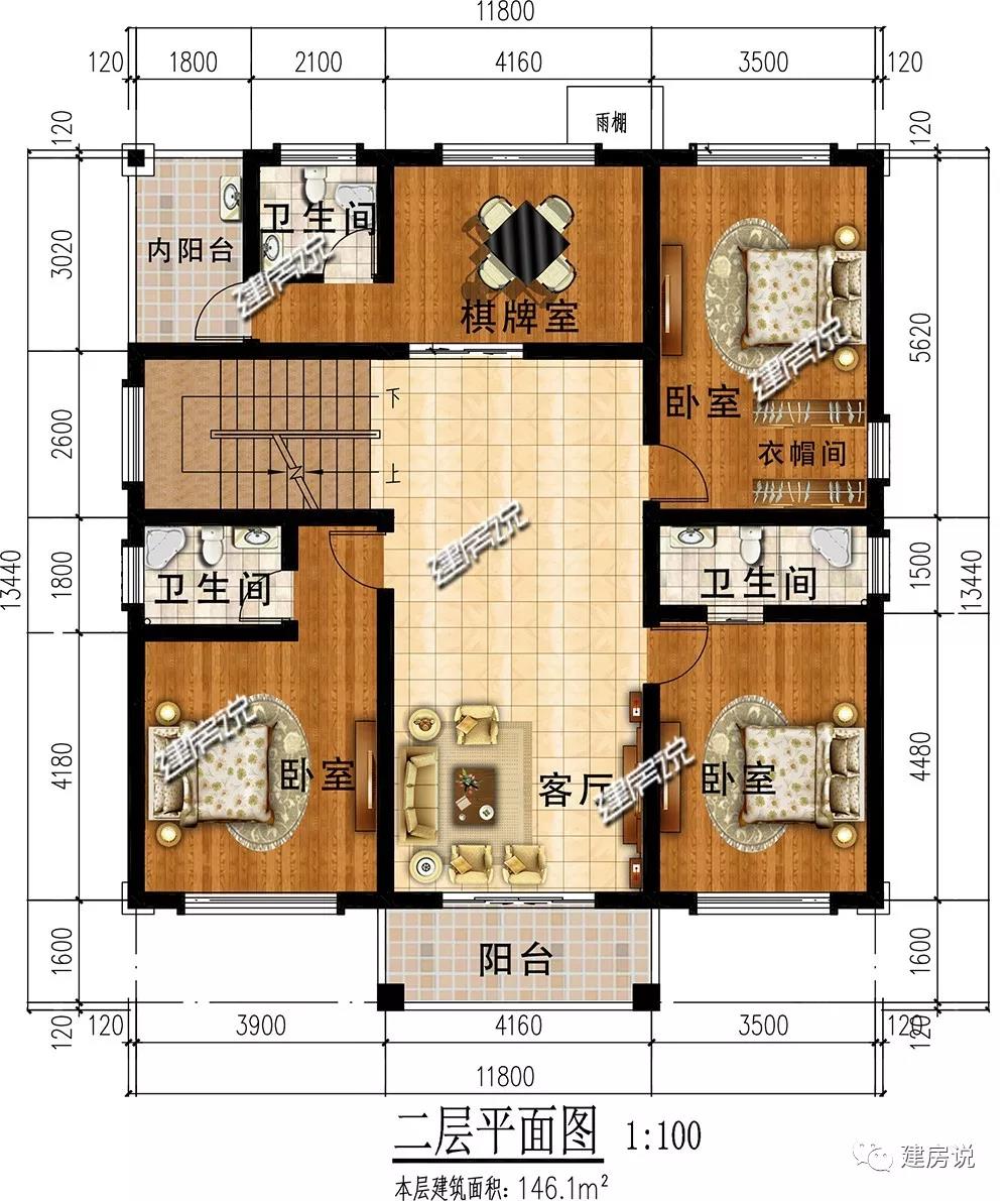 三層棋牌室可供娛樂休閑,臥室可當(dāng)客房,也設(shè)了洗衣區(qū),大露臺(tái)方便日常晾曬,也可打造空中花園。