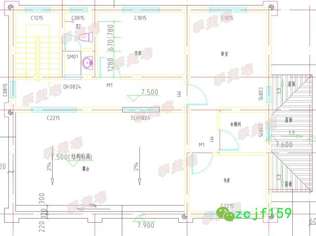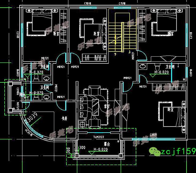 二 層:客廳、2臥室(帶內(nèi)衛(wèi))、3臥室、書房、衛(wèi)生間、露臺(tái)
