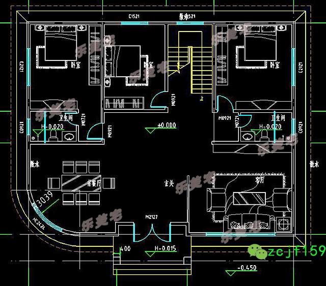 開間:15米 進(jìn)深:12米 占地面積:189.95平方米 建筑面積:461.05平方米