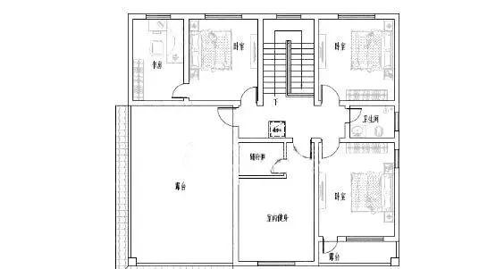 三 層:健身房(附儲藏間)、臥室(附露臺)、臥室(附書房)、臥室、衛(wèi)生間、露臺