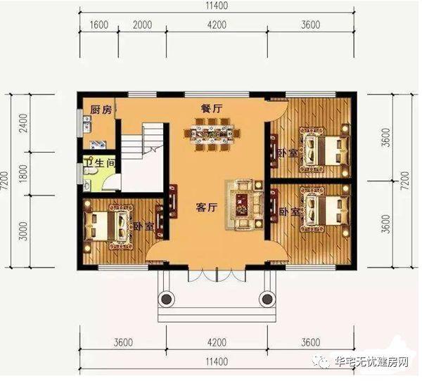 雖然占地面積只有11x7米,但是設(shè)計(jì)師充分的利用了宅基地,一層就設(shè)有三間臥室,客廳和餐廳連在一起,非常的寬敞大氣,廚房的空間相對(duì)較小,但是客戶說可以在屋后面再建個(gè)用柴火灶的小廚房,從樓梯道那里進(jìn)出也是相當(dāng)?shù)姆奖恪?/span>