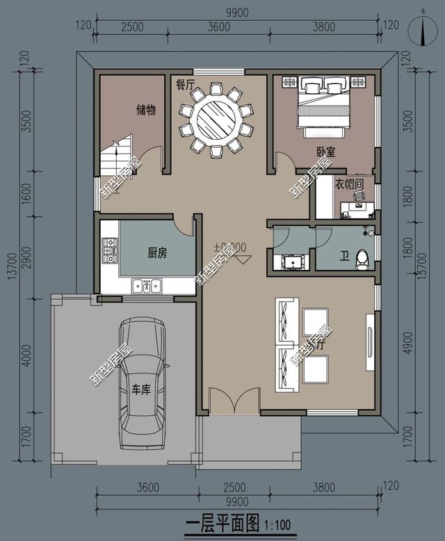 東側(cè)設(shè)計(jì)一個(gè)半開放式車庫,車輛日常進(jìn)出更加方便,同時(shí)也不會擔(dān)心陰暗潮濕的問題 。入戶設(shè)計(jì)一個(gè)寬敞的大客廳,一家人閑暇時(shí)便能在此聊天看電視。