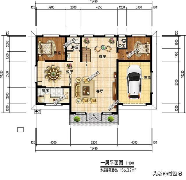 磚混結(jié)構(gòu),造價(jià)30-38萬(wàn),開(kāi)間15.49米,進(jìn)深10.32米,占地面積156.32平方米,建筑面積293.74平方米