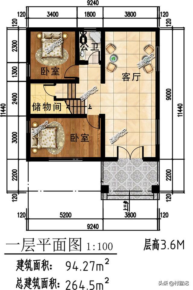 磚混結(jié)構(gòu),造價(jià)29-36萬,開間9.24米,進(jìn)深11.44米,占地面積94.27平方米,建筑面積264.5平方米