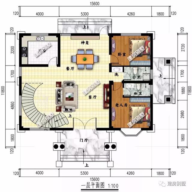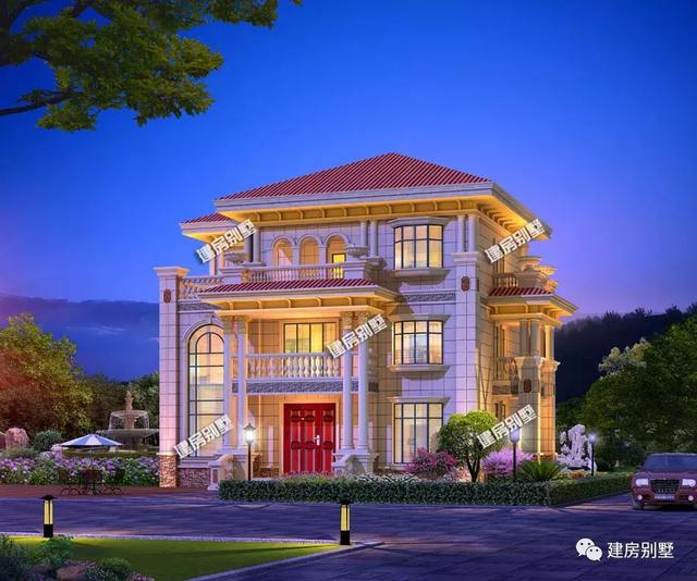 第一棟豪宅:15.6×11.8米,外觀造型非常的別致,使用羅馬柱、一些歐式構(gòu)件、落地大窗、飄窗和弧形拱門(mén)等,來(lái)加強(qiáng)別墅的氣派性,不看布局,這外觀我就打滿分。