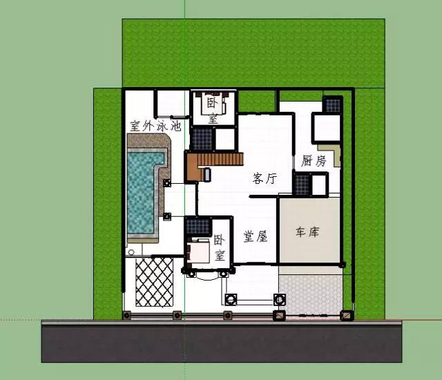20米X13米歐式風(fēng)格帶車庫(kù)自建房,采光通風(fēng)效果好!還有室外游泳館!