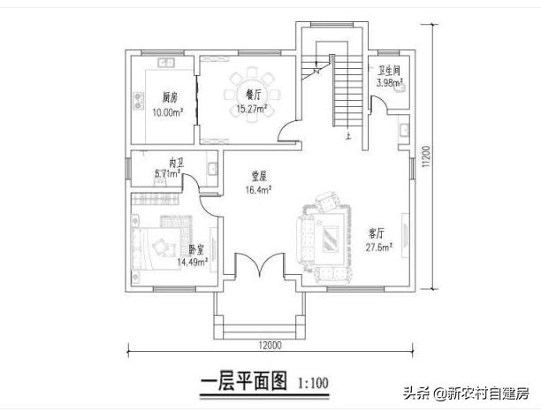 一層:堂屋、客廳、臥室【附衛(wèi)生間】、廚房、餐廳、衛(wèi)生間