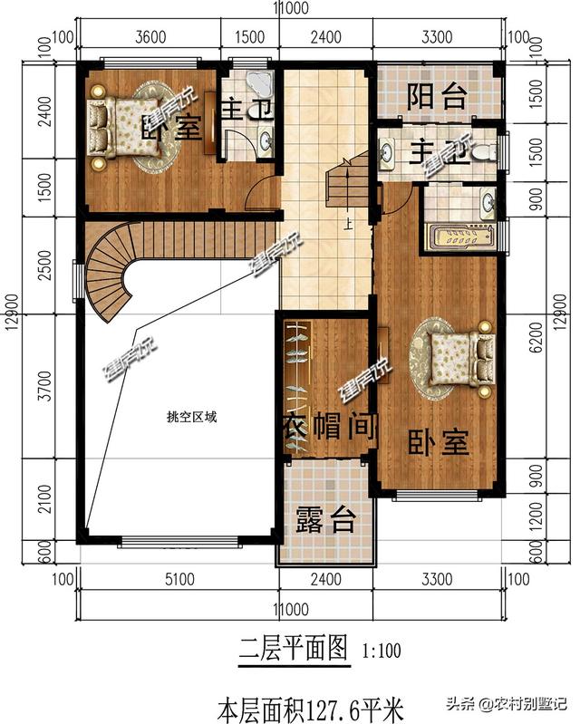 二層:客廳上空、2個臥室、衣帽間、2個洗手間、陽臺