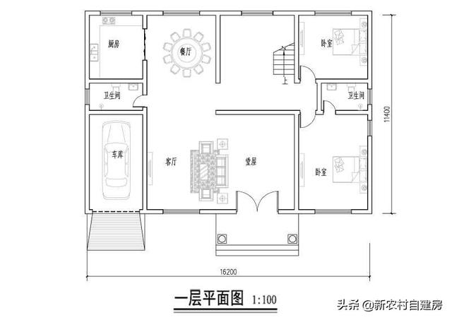 一層: 堂屋、客廳、臥室【附衛(wèi)生間】、臥室、廚房、餐廳、衛(wèi)生間、車庫