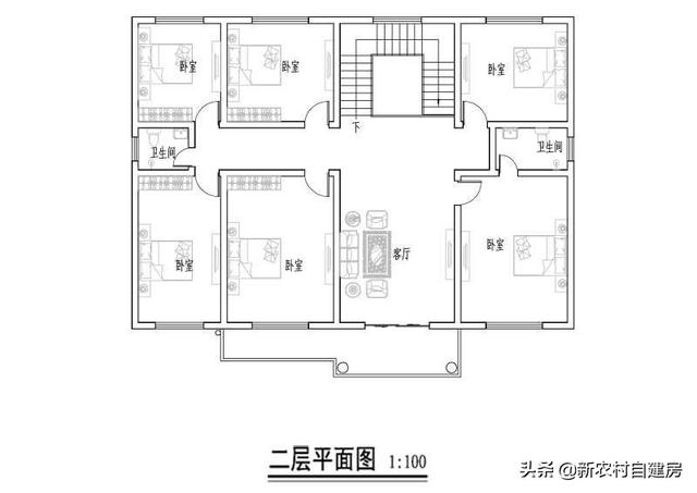 二層: 客廳【附陽臺】、臥室【附衛(wèi)生間】、5臥室、衛(wèi)生間