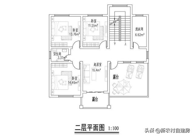 二層: 起居室【附露臺】、3臥室、洗衣間、露臺、衛(wèi)生間