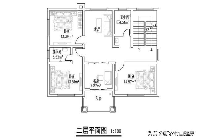 二層:客廳、臥室(附衛(wèi)生間)、2臥室、書房(附陽臺)、衛(wèi)生間