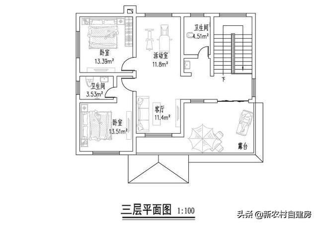 三層:活動(dòng)室、客廳、臥室(附衛(wèi)生間)、臥室、衛(wèi)生間、露臺