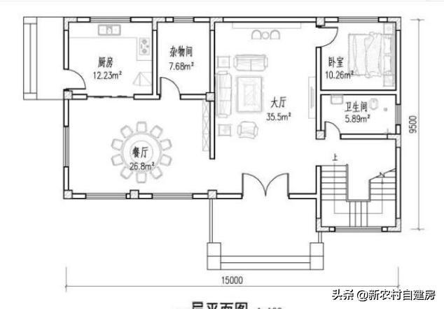 從室內(nèi)布局情況來(lái)看,完全是根據(jù)農(nóng)村人生活習(xí)慣而來(lái),進(jìn)門就能看見(jiàn)35平米的大客廳,它與過(guò)道相連,接讓人感覺(jué)室內(nèi)空間很大,農(nóng)村親朋好友多大圓桌設(shè)計(jì)正好滿足,廚房旁邊還設(shè)計(jì)有意見(jiàn)雜物間,方便擺放,平時(shí)不用的物件,生活井井有條,這樣的環(huán)境更舒心,右上角有一間臥室,緊緊相連的是公用衛(wèi)生間,方便起居。老人居住再適合不過(guò)了。