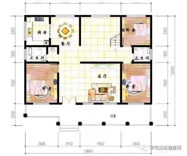 戶型尺寸:開間13.8米,進(jìn)深12米,建筑占地138.15平米。