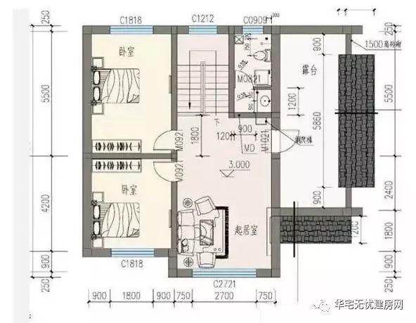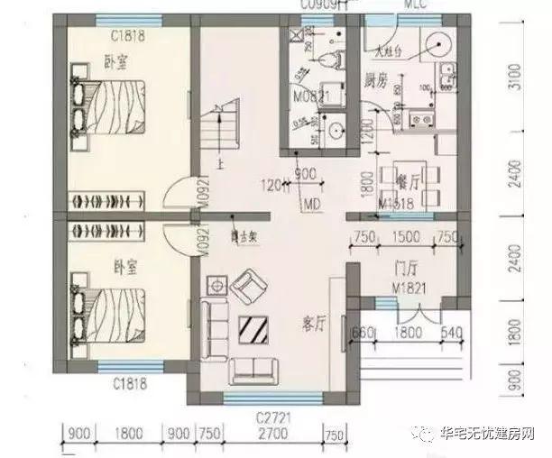 建筑外形傳統(tǒng),內(nèi)部設(shè)計卻符合現(xiàn)代人生活習(xí)慣,一層設(shè)兩室兩廳一廚一衛(wèi),進(jìn)門設(shè)門廳,各功能布局也符合現(xiàn)代布局立面,難能可貴的是廚房預(yù)留土灶位置并開后門,現(xiàn)代之中不忘傳統(tǒng);二層設(shè)兩室一廳一衛(wèi),整體建筑布局上下一致,功能分區(qū)合理,設(shè)專用大露臺,也是當(dāng)下的主流。