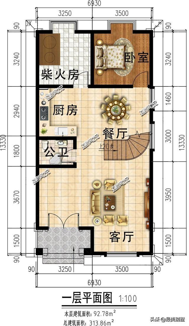 造價(jià)35-42萬(wàn),開(kāi)間6.93米,進(jìn)深13.33米,占地面積92.78平方米,建筑面積313.86平方米,建筑高度15.189米