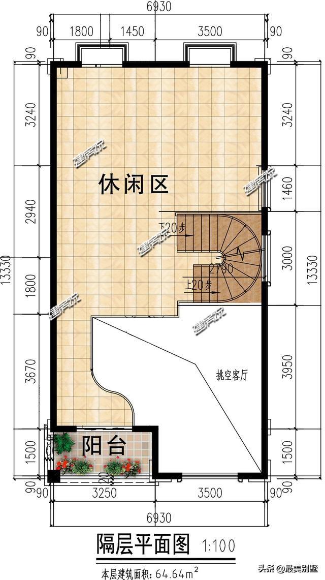 雖然占地比較小,但是建三層半,氣勢(shì)上不能輸,還帶挑空復(fù)式樓,高大上。