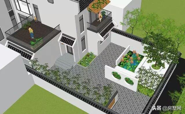 建筑二層具有露臺(tái)的設(shè)計(jì),為了不讓露臺(tái)太過(guò)于單調(diào),露臺(tái)上種植了一些綠色植物,使空氣更加清新。