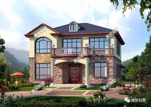 戶型二:12×13.5米,磚混結(jié)構(gòu),主體造價(jià)也是在25萬(wàn)左右的,這棟別墅外觀裝飾的顏色和用材上面要更加豐富一些,帶來(lái)的視覺感官性更強(qiáng)烈。