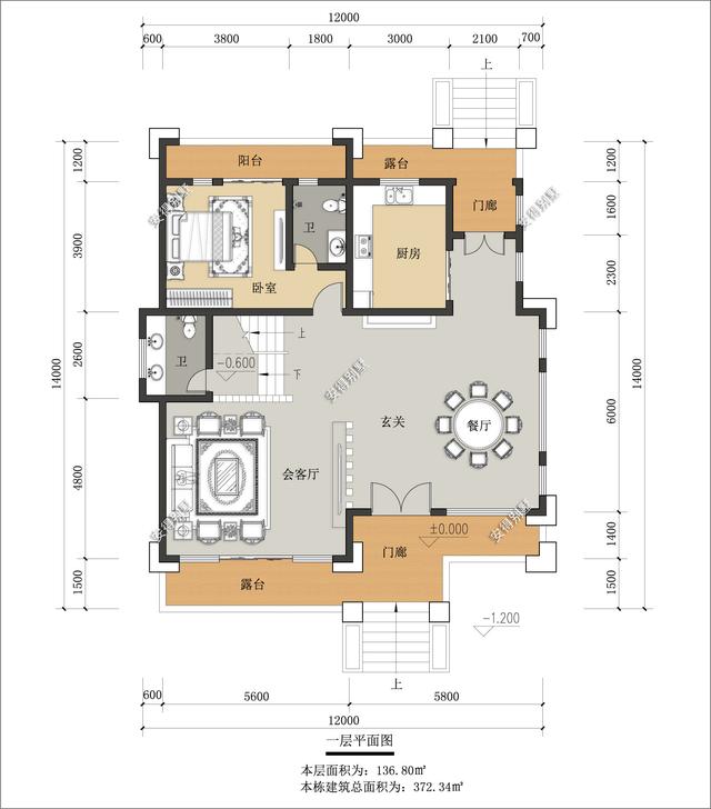 今天給大家介紹的這棟自建別墅,首層占地面積為:168㎡,開間為12m,進深為14m,共3層,總建筑面積為:372.34㎡;