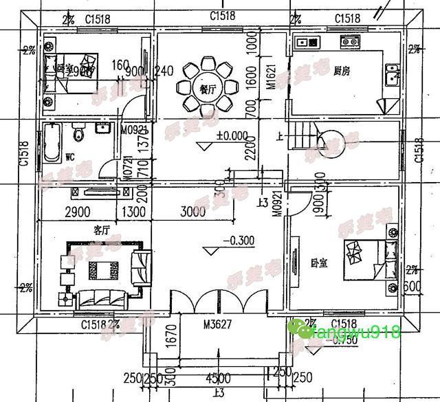 一 層: 客廳、2臥室、廚房、餐廳、衛(wèi)生間