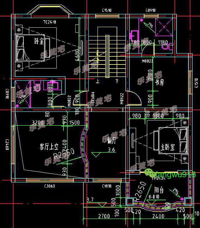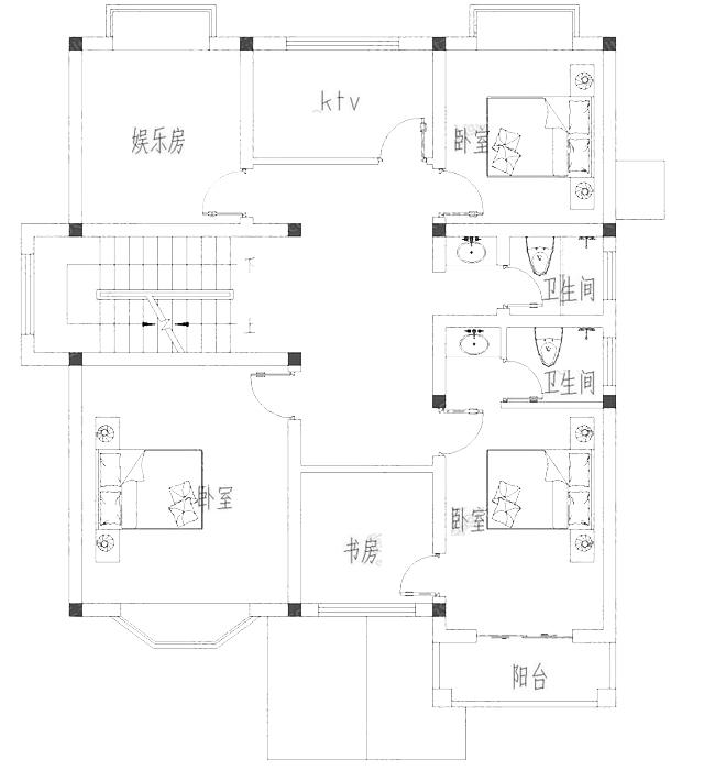 二 層:3間臥室,臥室?guī)l(wèi)生間、書(shū)房、娛樂(lè)房、衛(wèi)生間