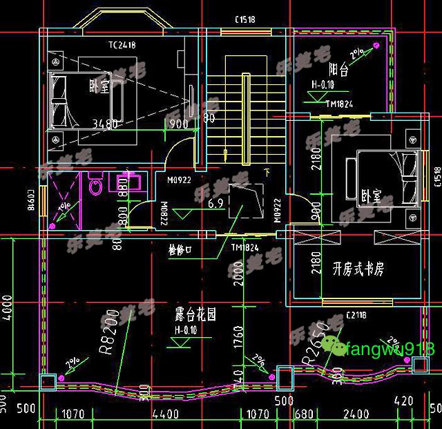 三層:臥室、公共衛(wèi)生間、臥室(帶陽(yáng)臺(tái)、開(kāi)放式書(shū)房)露臺(tái)