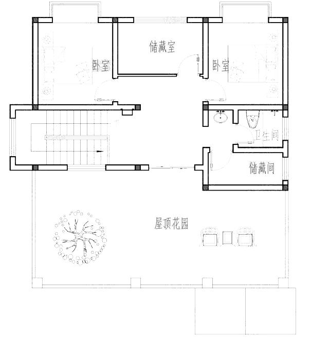 三 層:2間臥室、書(shū)房、衛(wèi)生間、屋頂花園、儲(chǔ)物間