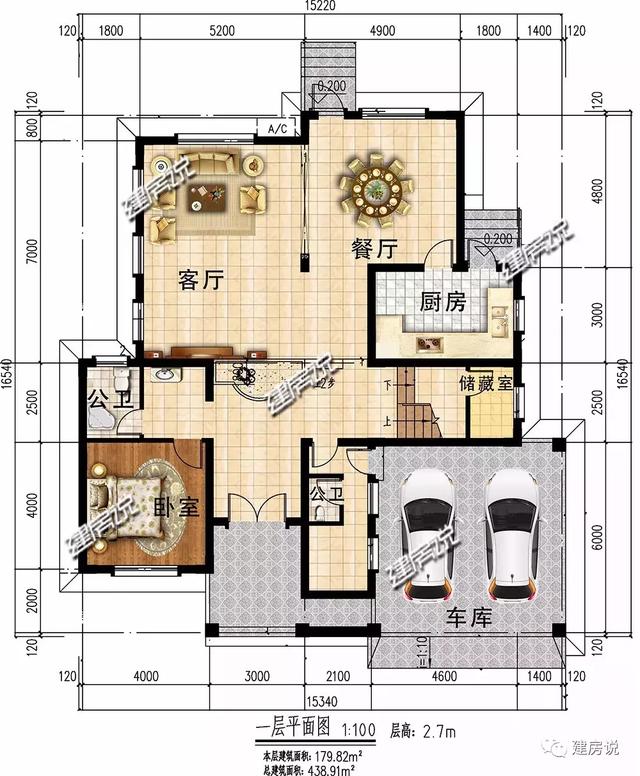 一層:入室有隔斷,避免入門見戶;設(shè)有1間臥室,可作為客房;廚房餐廳相連,干凈衛(wèi)生;設(shè)有1個(gè)車庫,方便停車。