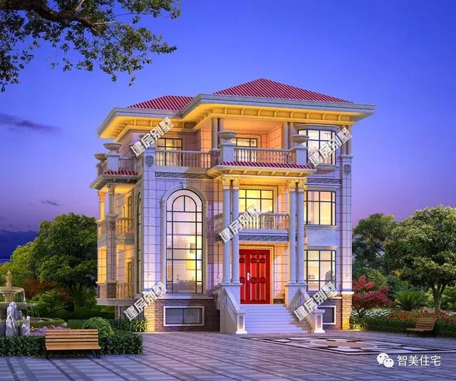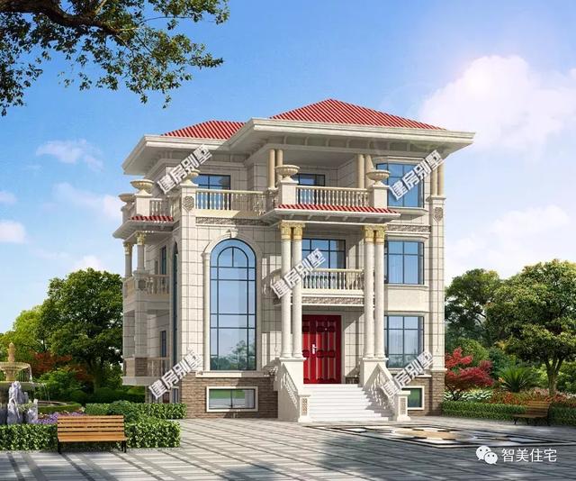 該棟別墅除了地下一層之外,地面上還設計有三層,除了用到落地窗和飄窗這類設計,大門處用的四根圓形羅馬柱,側(cè)面往外延伸出來設計的陽臺空間和一些歐式構(gòu)件等,都在像我們展示這棟別墅有多么的美觀和氣派。