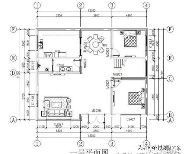 戶型開間13.3米,進(jìn)深11米,占地面積146平方米,建筑高度為9.3米,磚混結(jié)構(gòu),主體造價(jià)28萬。